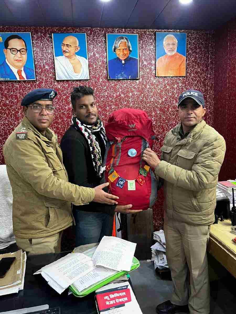दिनांक 27.12.2025 को कबिलन जगदीशन, निवासी चेन्नई, तमिलनाडु द्वारा पुलिस आपात सेवा 112 के माध्यम से सूचना दी गई कि वे देहरादून से मसूरी की ओर यात्रा कर रहे थे। यात्रा के दौरान वाहन चालक द्वारा गलती से वाहन की डिग्गी खुली छोड़ देने के कारण उनका एक बैग वाहन से गिर गया है, जिसमे उनका महत्वपूर्ण व्यक्तिगत समान रखा तथा आवश्यक दस्तावेज रखे हुए थे।
