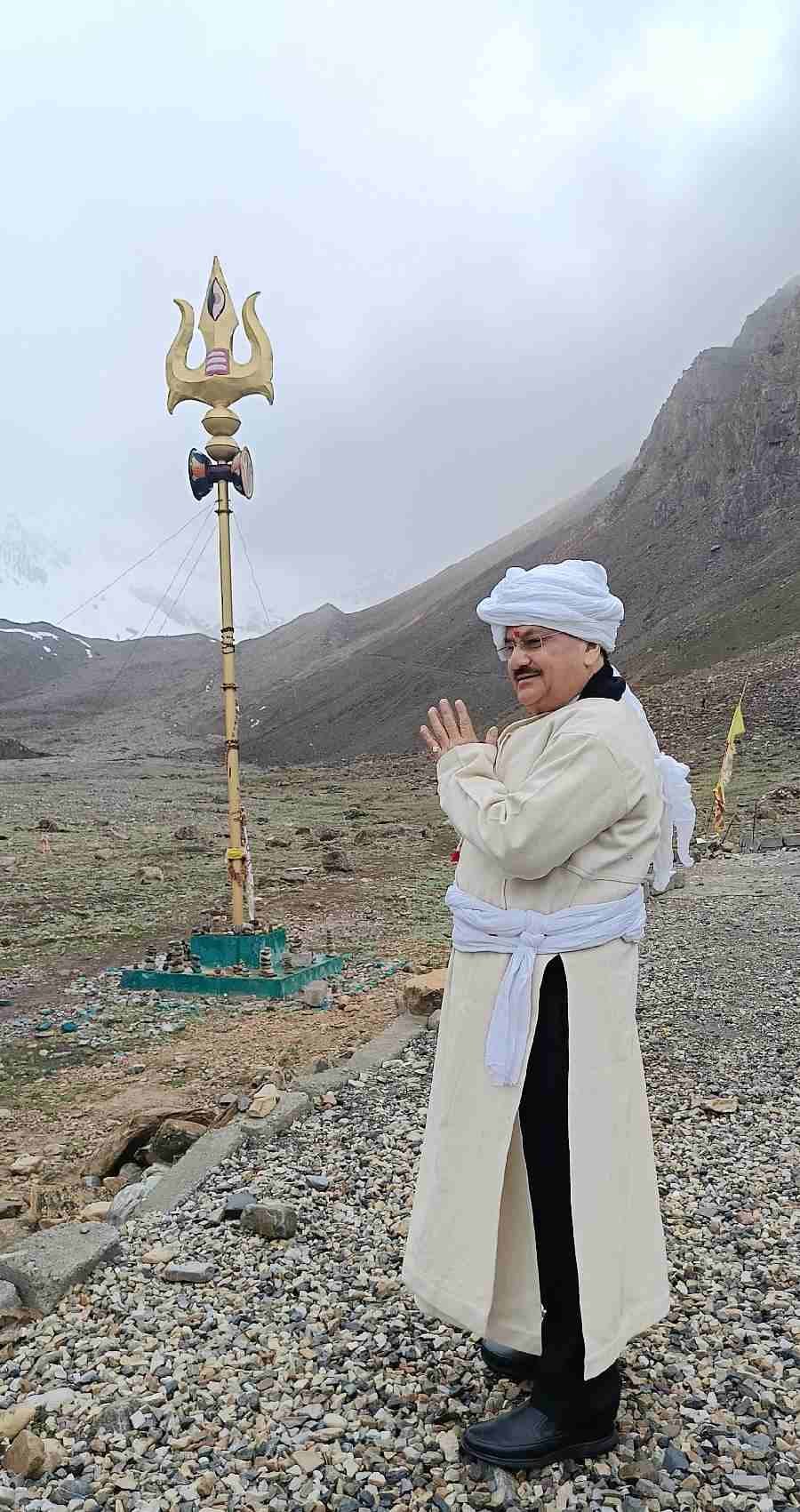पिथौरागढ़ जनपद भ्रमण पर पहुंचे केंद्रीय मंत्री भारत सरकार जे0 पी0 नड्डा द्वारा आज दोपहर पवित्र आदि कैलाश क्षेत्र के दर्शन कर आदि कैलाश एवं पार्वती कुंड के निकट विराजमान भगवान शिव के मंदिर में जाकर पूर्ण विधि-विधान से भगवान शिव की आराधना की और देश वासियों की सुख-समृद्धि, शांति और खुशहाली के लिए प्रार्थना की। उन्होंने क्षेत्र की प्राकृतिक सुंदरता और आध्यात्मिक महत्व की प्रशंसा करते हुए इसे अद्वितीय बताया।